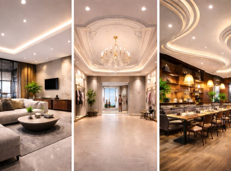 Stylish false ceiling designs with modern finishes and ambient lighting solutions.