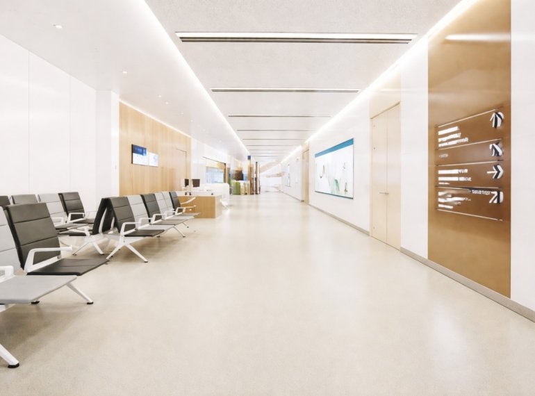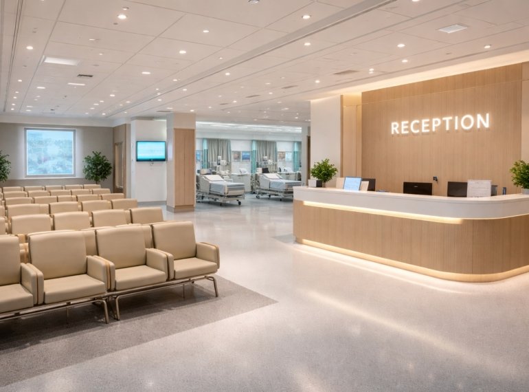 Specialized healthcare interiors focused on hygiene, safety, and patient comfort.